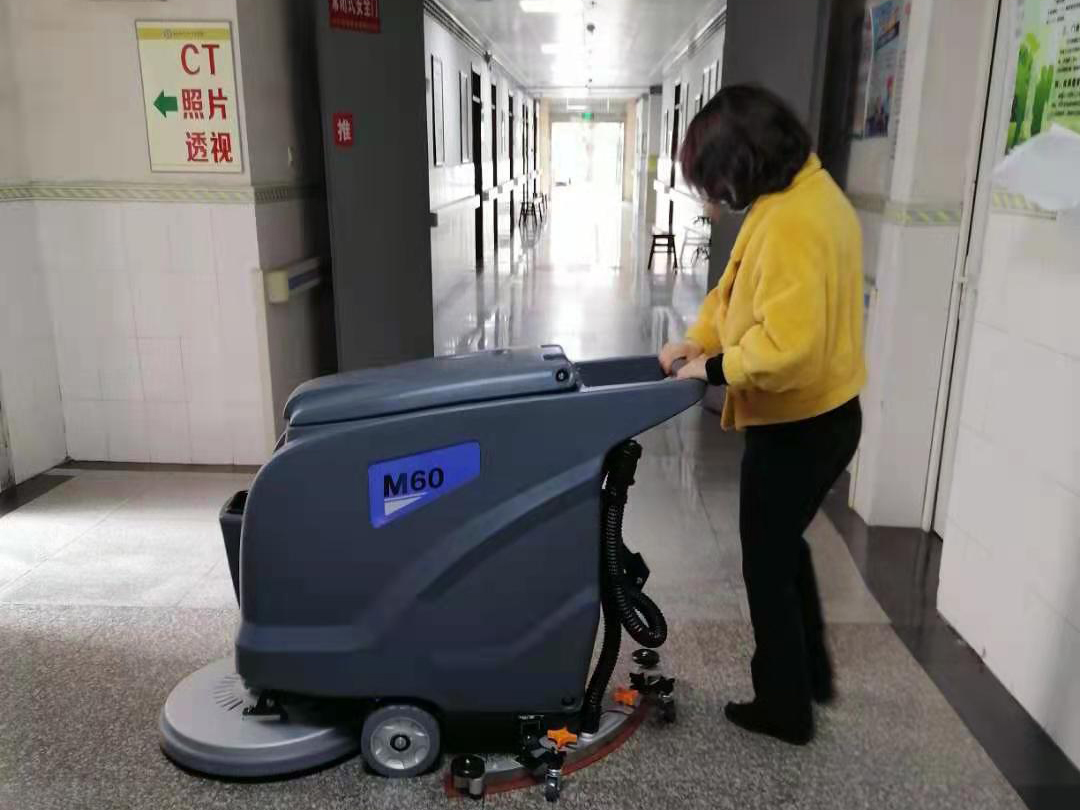 四川一中醫(yī)醫(yī)院采購(gòu)成都宏雯手推式洗地機(jī)清潔地面